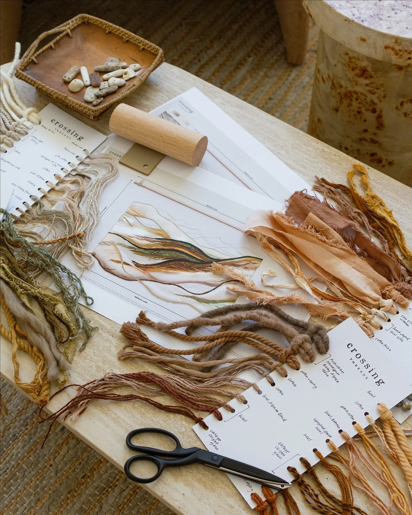 Known for their large-scale and highly textural handwoven pieces, the Hernandez sisters seek to emulate the natural forms found in Mother Nature. Their carefully curated fibre selections include Australian Merino wool, plant-based fibres, up-cycled/dead-stock fabrics, and other foraged items not typically used in traditional fibre art. Their practice has led them to develop their recognisable ‘interknot’ technique, made up of intertwining hand-knotted chains of varying texture and thickness, which graduate to a relief. The artists draw inspiration from their surrounding landscapes, familial relationships, and personal experiences woven into their abstract designs. Through extensive experimentation fuelled by curiosity, passion, and collaboration, Crossing Threads® has had the opportunity to share its art with many collectors worldwide.