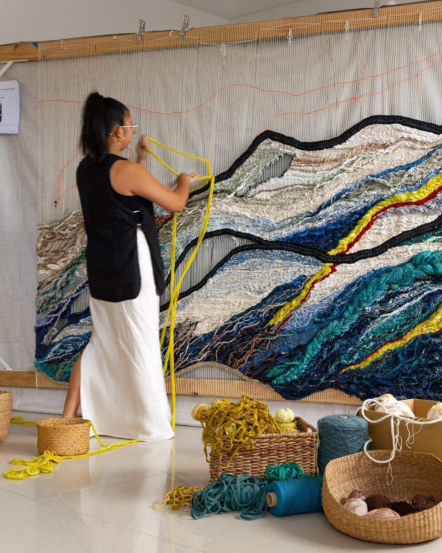 “When we weave, we let our emotion drive our creative process; breathing through our hands in each woven detail. To lean inwards and express our inner dialogue through fibre, has helped us grow spiritually and together as sisters.”