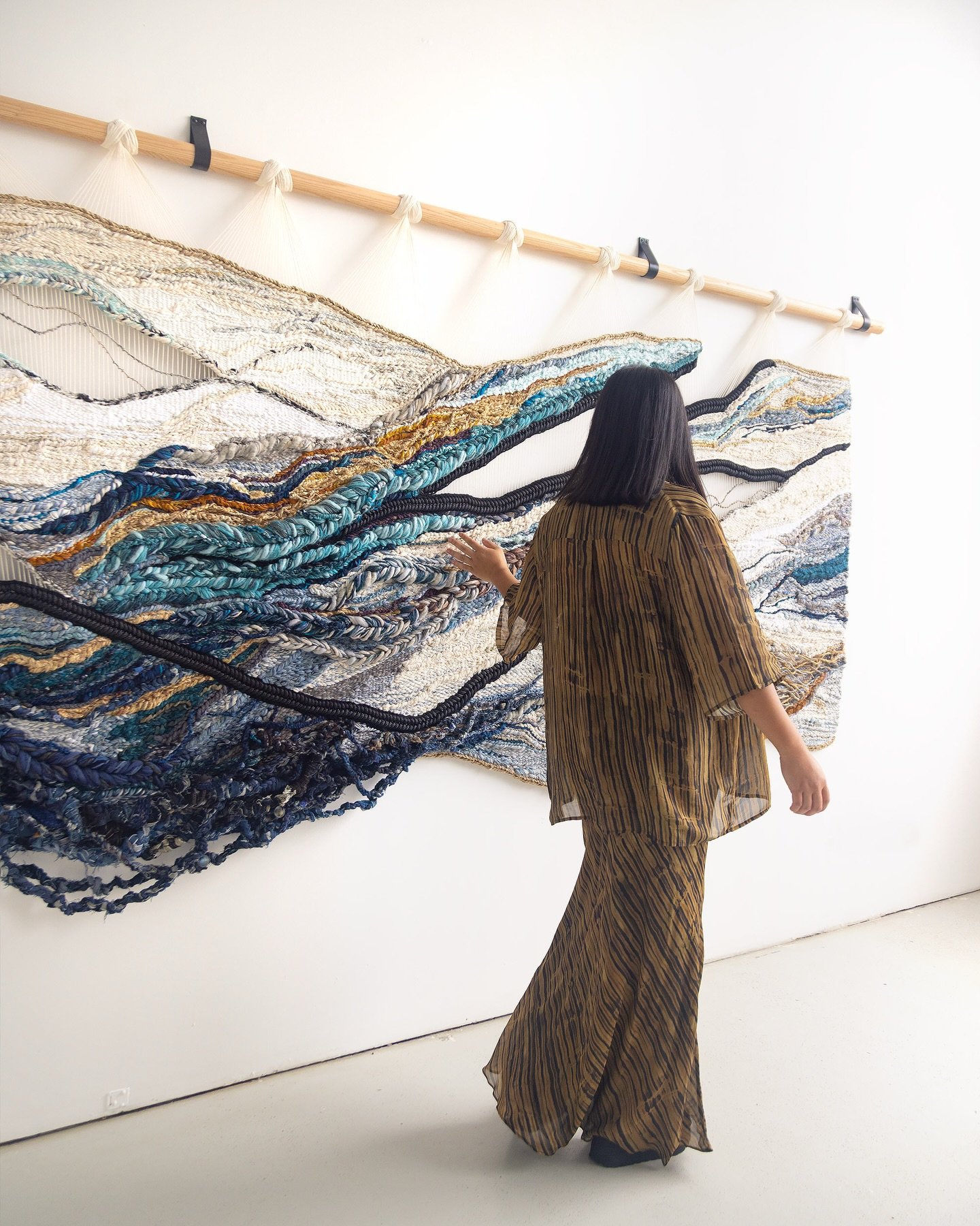 Materials play a vital role in their storytelling. Each work is composed of carefully chosen fibres, including Australian Merino wool and plant-based threads, as well as upcycled, deadstock, and foraged materials. By giving new life to what might otherwise be discarded, they celebrate transformation and sustainability in both material and meaning.